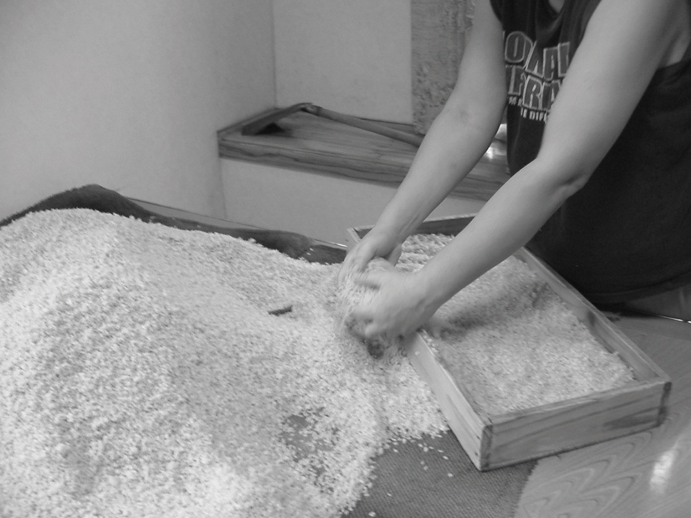 この黒麹菌の強さは、黄麹菌を使って造られる日本酒の製造工程と比較すればより明らかです。黄麹菌を使った酒造りでは乳酸菌が生成されますが、酸度が低いため、ときには乳酸菌を添加して雑菌の繁殖を防ぎます。しかし、黒麹菌の出してくれるクエン酸には及ばないので、日本酒造りは雑菌の少ない冬の時期に、それも作業場には基本的に関係者以外入れず、徹底した雑菌対策を施したうえで行われています。